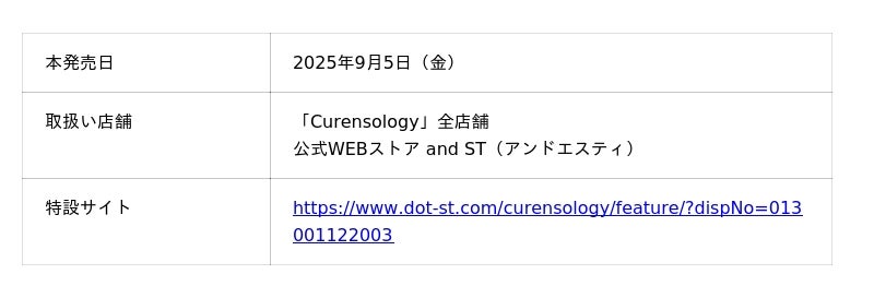 <公式WEBストア and ST(アンドエスティ)> https://www.dot-st.com/curensology/