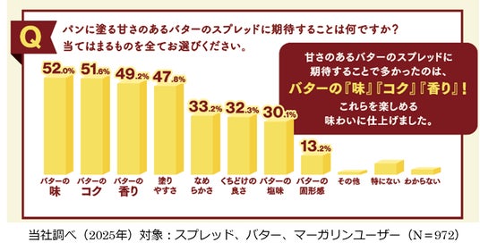 さらに、バターのスプレッドに期待する点として、「味」「コク」「香り」が多く挙げられました。