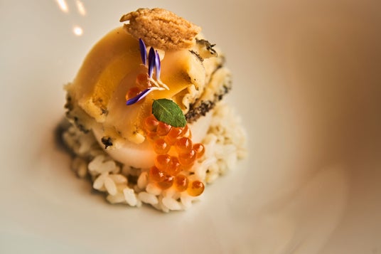 ・海の幸 - 蝦夷鮑と杉の味噌 柚子のリゾット