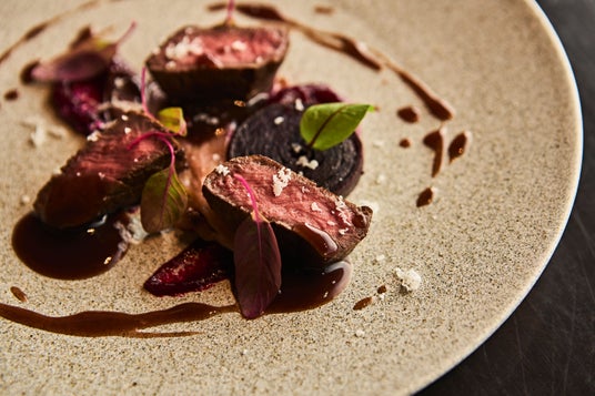 葉山クイーンビーフ 炭の香り ビーツのクーリーと赤酒のレディクション