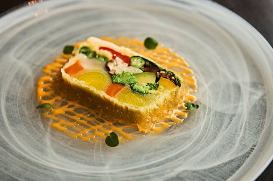 寒鰤とキャビアの香りが広がるひとくちのスモークから始まり、彩り豊かな野菜と帆立を閉じ込めたプレッセ、濃厚なフォアグラと鴨のカネロニ、香ばしく焼き上げた蝦夷鮑と杉味噌の融合など、季節を映した一皿一皿をご用意。