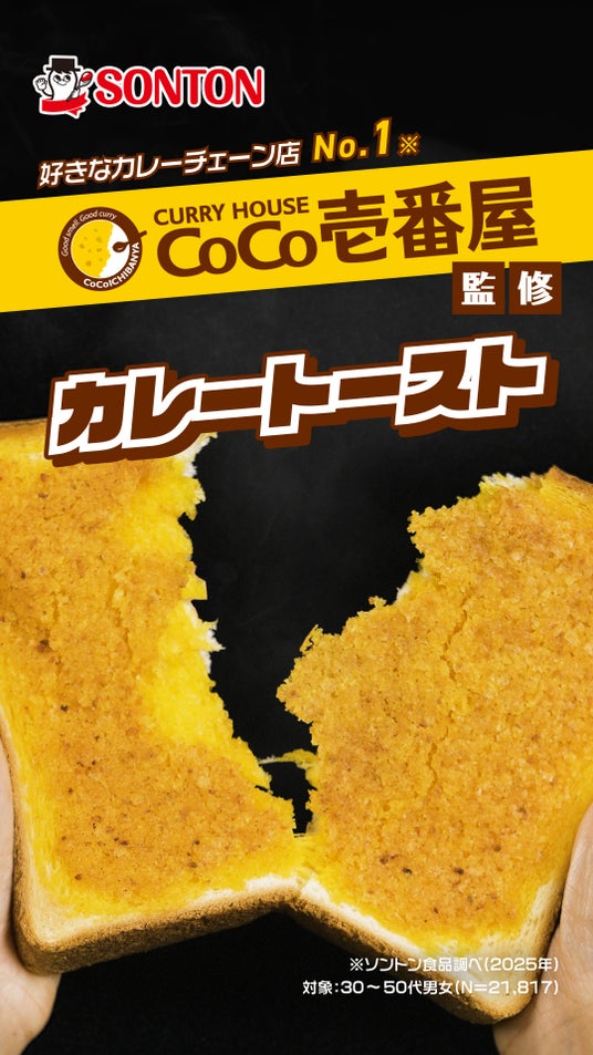 ソントン食品株式会社(本社:東京都江東区、社長:石川紳一郎、以下ソントン)は、「カレーハウスCoCo壱番屋(以下、ココイチ)」が監修したトースト用クリーム『CoCo壱番屋監修カレートースト』を、2025年9月1日より、全国で新発売いたします。本商品は、食パンに塗ってからトーストするだけで、あの「ココイチ」をイメージしたカレー味をトーストで楽しめる商品です。おいしいカレーの味をおうちでご堪能いただけます。