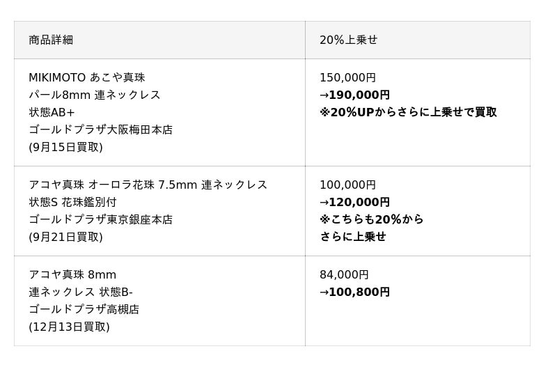 パールネックレスの買取価格20%上乗せ