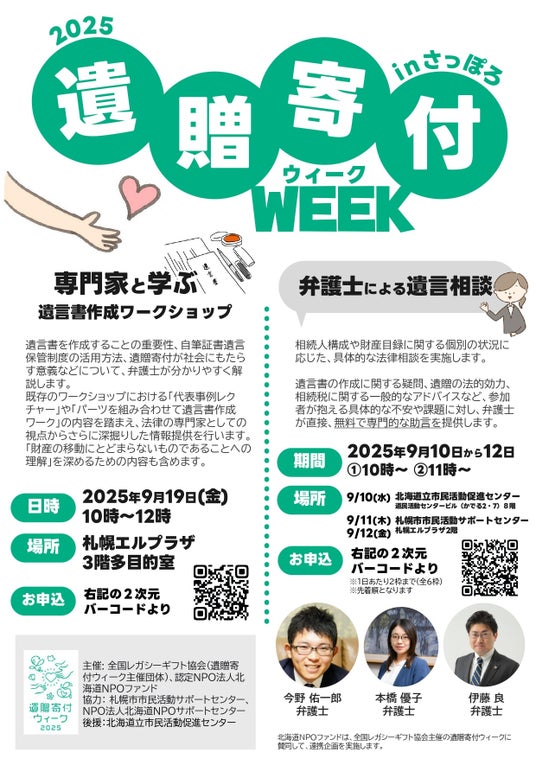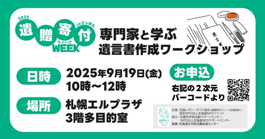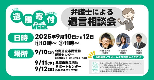 【9月10日から19日】遺贈寄付ウィーク2025の連携企画を札幌で開催。遺言書作成ワークショップや、弁護士による遺言相談を実施します。