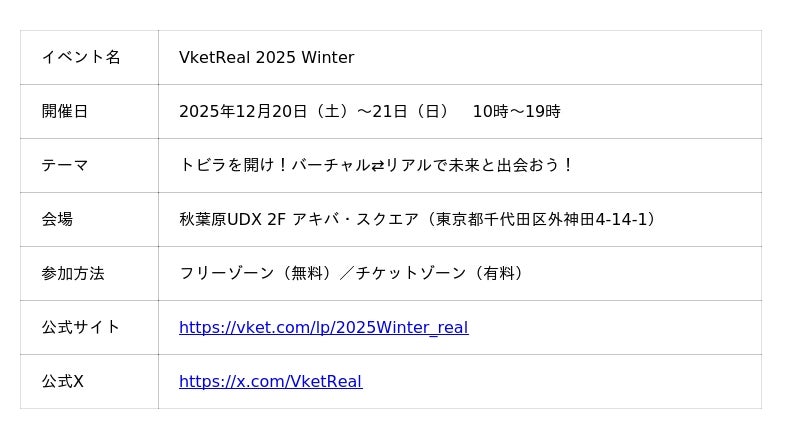 『VketReal 2025 Winter』12月20日~21日に秋葉原UDXで開催決定!出展者、有志スタッフ応募受付開始
