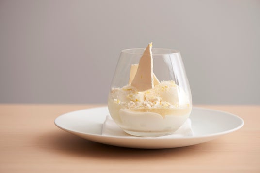 Mr. CHEESECAKEのシグネチャーフレーバー「Classic」をレストランデザートに仕上げたグラスデザート。バニラはキャラメリゼしたクッキーを混ぜ込んだディプロマットクリームに、レモンはハーブとともに爽やかなジュレに、トンカ豆はブランマンジェに仕立て、ヨーグルトやクリームチーズのアイスクリームとともに一皿として再構築することで新しいおいしさを生み出しました。それぞれのパーツが口の中で溶けていくタイミングを意図的に変化させることで、味わいと香りがメロディーのように美しく連なり流れていく様子をお楽しみください。