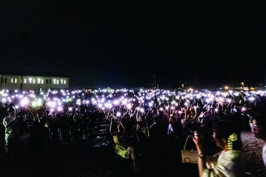 花火のフィナーレ後には、会場全体でスマートフォンライトを点灯し、花火の打ち上げを担当いただいた花火師(葛城煙火株式会社)の皆さまへ感謝のメッセージを送る参加型演出を実施しました。