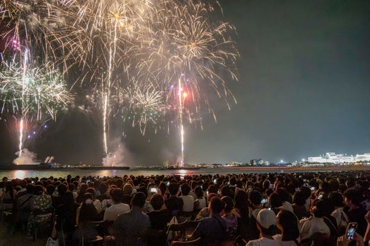 ~花火発数は昨年比1.3倍以上、台船3隻から打ち上げ!ドローンショーや縁日も~