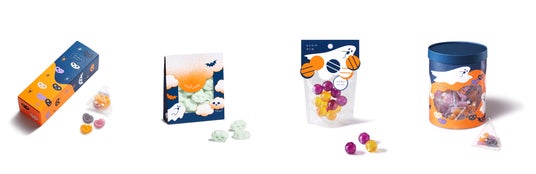 キャンディをあげる楽しさともらう楽しさを作り出し、小さなヒトツブがヒトからヒトへとつながっていくお店を目指すカンロの直営店「ヒトツブカンロ」が贈る今年のハロウィンのコンセプトは『Trick,Treat&Candy Fun!』。外はパリッと、中はしっとりした次世代食感が楽しめる「グミッツェル」や、柔らかいのに弾力のある噛みごたえの不思議なもふふわ食感のマシュマロ「mofuwa」がプチっと小さくなった「グミッツェルプチ」や「mofuwaプチ」など、ヒトツブカンロの大人気商品4品がハロウィン限定パッケージで登場します。おばけのイラストがあしらわれた、思わず歌いだしたくなるような気分が上がるかわいらしいデザインで、ハロウィン用のお菓子やプチギフトにもぴったりな、ヒトツブカンロならではの商品をお届けします。