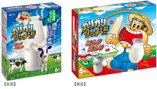 「ガリガリ君リッチミルクミルク」は、ミルクアイスの中に、ガリガリ食感の濃厚なミルクかき氷を入れたアイスキャンディーです。今回は北海道産生クリームを新たに使用することで、濃厚なミルクの中にもさっぱりとした後味にリニューアルしました。