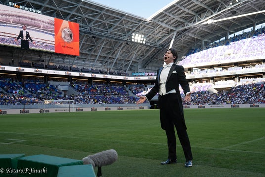 サッカー界のレジェンド Zico氏の名を冠したチャリティーマッチ Zico All-Star Game HIROSHIMA。 その世界的なイベントのハーフタイムショーをモアザンミュージカルがプロデュースしました。平和への祈りとサッカーへの愛を込めてオペラ歌手が熱唱。サッカーファンにとってもお馴染みのオペラ『アイーダ』“凱旋行進曲”に始まり、青木エマ(ソプラノ)が『蝶々夫人』“ある晴れた日に”、金山京介(テノール)は『トゥーランドット』“誰も寝てはならぬ”で1.5万人余りの観客を魅了しました。