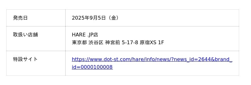 <公式ブランドサイト> https://www.hare.jp/