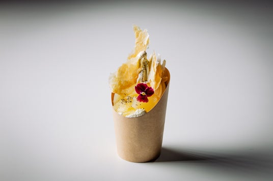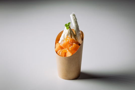 富良野メロン、牧場直送のフロマージュブラン、北海道産の米を使用した日本酒がマリアージュしたラグジュアリーな味わいのパフェ。 ココナッツを使用したメレンゲ、濃厚なバニラソフトと牧場直送のフレッシュなフロマージュブランはメロンと日本酒をふくよかに引き立てます。 クレームダンジュというフランスのクラシカルなスイーツをパフェ仕立てでお楽しみください。