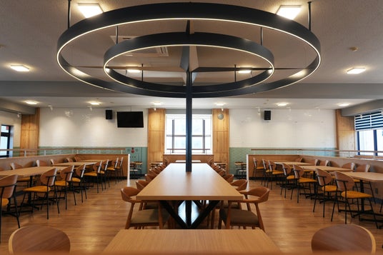 食堂としてだけでなく、休憩場所や自習室、カフェとしても利用できる空間デザインを施しました。生徒たちにとって、教師や友人との関係性を深め、学ぶ場であって欲しいという想いが込められています。