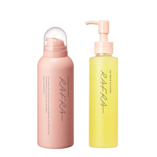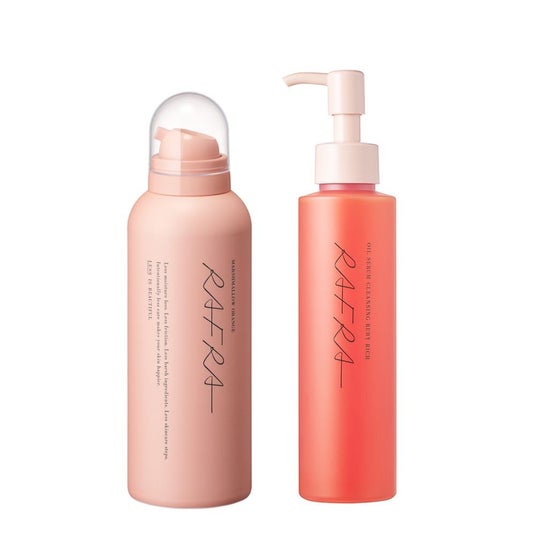 オイルの洗浄力とバームのうるおいを両立した人気の「オイルセラムクレンジング(150ml)」と炭酸※4泡洗顔「マシュマロオレンジ(150g)」の限定セット。