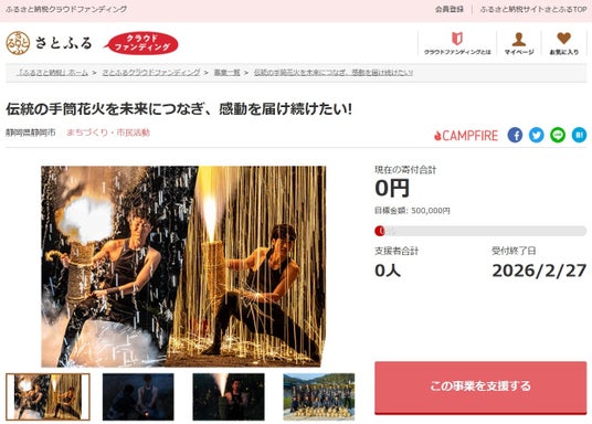 静岡県静岡市とふるさと納税ポータルサイト「さとふる」を運営する株式会社さとふる(本社:東京都中央区、代表取締役社長 兼 CEO:藤井 宏明)は、「さとふるクラウドファンディング」にて、静岡県静岡市における2事業の寄付受け付けを2025年8月29日より開始します。なお、里山体験の事業は2023年に開始し今回で4回目、手筒花火の事業は2020年に開始し今回で6回目の寄付募集となります。