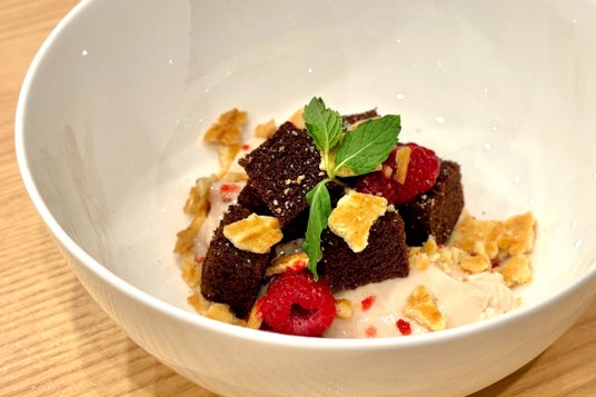 ふんわり広がるほうじ茶の香りをまとわせた濃厚パンナコッタに、甘酸っぱいラズベリーを合わせたクラッシュドタルト。サクサク食感を楽しめるよう、仕上げにタルトクランブルを振りかけています。たっぷりの牛乳で仕立てたなめらかな口あたりに、丁寧に煎り上げたほうじ茶の芳ばしさとラズベリーの酸味が重なり、ひと口ごとに奥行きのある味わいをお楽しみいただけます。和と洋が絶妙に調和する、大人のためのデザートです。