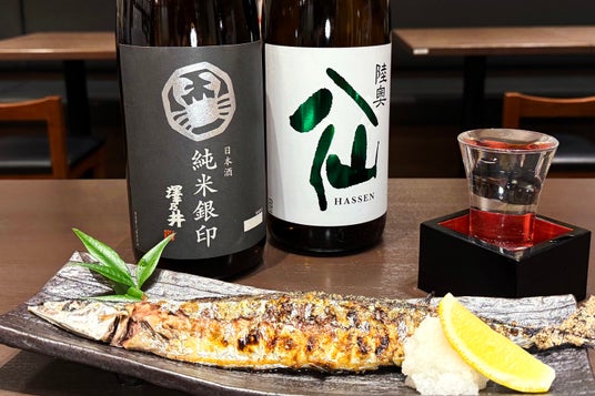 旬メニューと一緒に味わってほしい日本酒2種を用意しました。「陸奥八仙 緑ラベル 特別純米(一合900円)」(青森・八戸酒造)は、江戸時代から秋の風物詩として親しまれてきた“ひやおろし”と呼ばれる、この時期ならではの日本酒です。ひと夏熟成させることで、爽やかさとまろやかさのバランスが絶妙。「秋鮭ザンギ」や「かぼちゃの田舎煮」などと、フルーティーな味わいがよく合います。「澤乃井 純米 銀印(一合650円)」(東京・小澤酒造)は、低精白米で醸造し、米の旨味とコクを引き出した純米酒です。すっきりした飲み口の中に、濃厚な旨味が広がり、「さんま塩焼き」と一緒に味わうと香ばしさや脂の旨味を引き立てます。