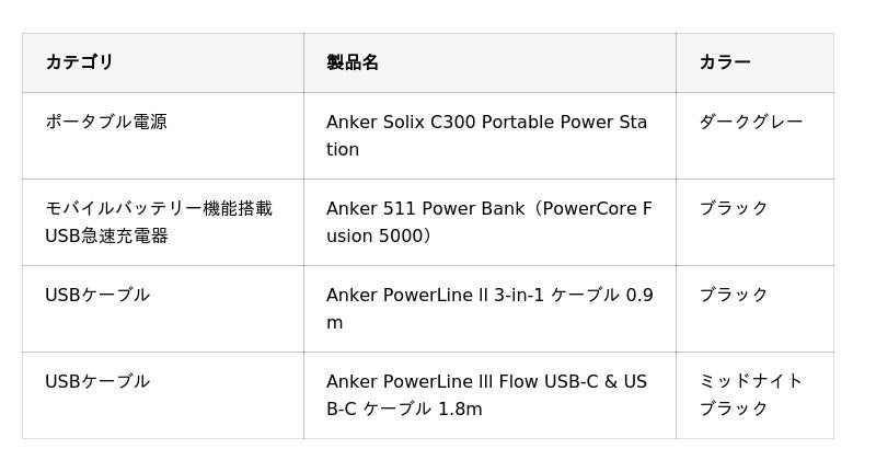 ・Anker製品(各 1個)