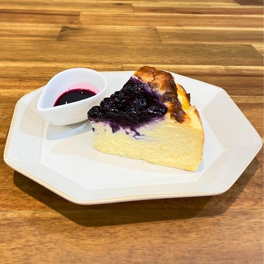 自家製ブルーベリーソースを贅沢に使った「ブルーベリーバスクチーズケーキ」を販売中です。