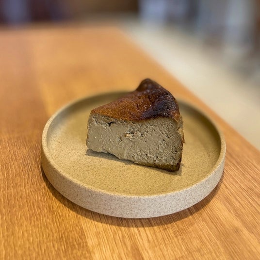 ほうじ茶バスクチーズケーキ香ばしく、甘さ控えめでスタッフ一押し