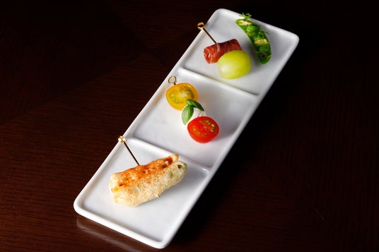 8月に引き続き、ジントニックに合わせて野菜フリット、カプレーゼ、生ハム&シャインマスカットの3種類のプティ バリエをご用意しました。