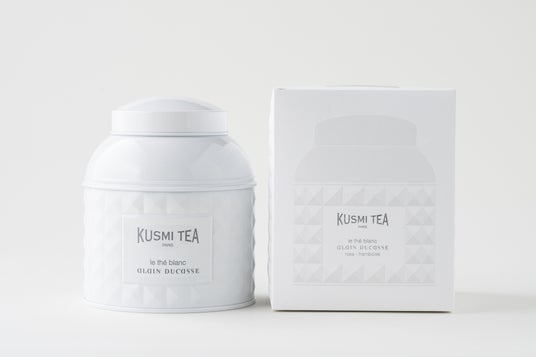 ル・ショコラ・アラン・デュカス/TOKYU Foodshow EDGE 1階/「テ ブラン アラン デュカス 120g缶」アラン・デュカス氏が「フランスらしさ」を追求して作り上げた上質な白茶。ローズとフランボワーズの華やかな香りが、秋のひとときを優雅に彩ります。缶入りで贈り物にもぴったりです。