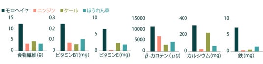 β-カロテンはニンジンの約1.6倍、鉄分はほうれん草の約3.7倍。 また、重要な腸内環境を整えるうえで大切な「水溶性食物繊維」と「不溶性食物繊維」をバランスよく含む、貴重な野菜です。