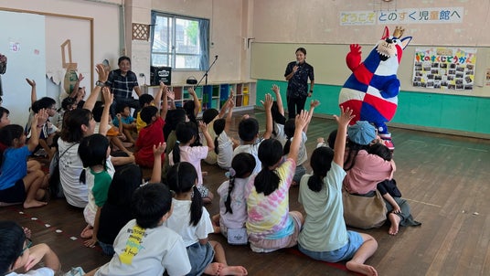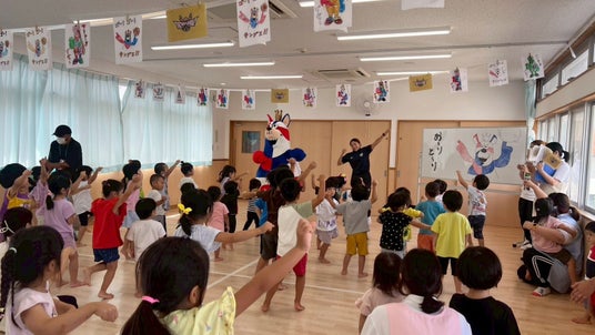 昨年に続いての訪問となった施設では、より体を動かす内容となり、子どもたちが楽しそうに参加している姿が印象的でした。一方で、初めての訪問先では、ゴーディーの大きさに驚いて泣き出してしまう子もいましたが、ダンスを楽しみ、最後には笑顔で手を振ってくれる様子も見られました。
