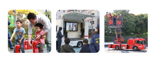 消防車両や消火器体験など、体験型の防災コンテンツに挑戦!ご家族一緒にご参加ください。