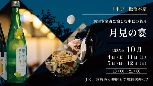 酒々井町発 | 月見の宴20252025年10月4日(土)・5日(日)・11日(土)・12日(日)の4日間、「月見の宴」を開催いたします。三味線の生演奏やソプラノ歌唱に酔いしれながら、季節の日本酒とお料理を楽しむ一夜。飯沼本家流の月見をお楽しみください。