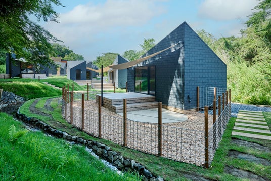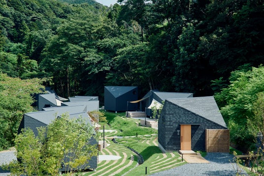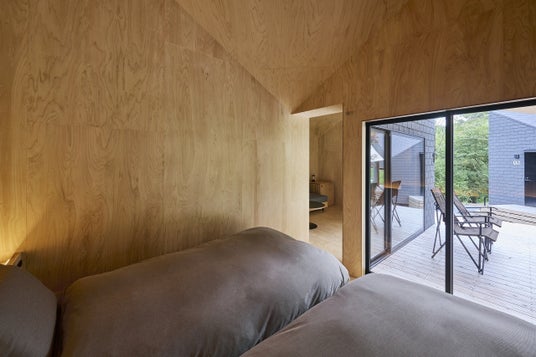 鋸山(のこぎりやま)の形をイメージした全10棟のキャビンは、ウッドデッキ付きの独立型コテージ。室内と屋外がシームレスにつながり、開放感あふれる滞在をお楽しみいただけます。