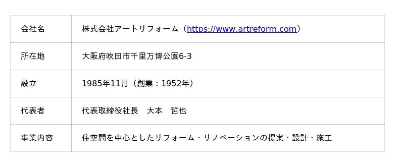 創業70年、年間6500件以上のリフォームを施工し、関東、関西、東海、九州に展開するアートリフォーム。大手不動産仲介会社各社のパートナーとなり、中古物件購入時のリフォームを手掛けるBtoB事業、WEBや折込チラシからの反響顧客に対するリフォーム提案のBtoC事業を展開。利用者数No.1のリフォーム会社サイト「ホームプロ」においては13年連続でリフォーム完了件数西日本第一位、2022年度は完了金額西日本第一位の表彰を受けている。また、2022年度の売上ランキングでは西日本の総合リフォーム店で1位となり、ビジョンである『業界の先頭集団』に向けて成長を続けている。2017年から事業継承M&Aにも取り組み、地域から愛される歴史ある企業群でグループを形成。グループとして売上100億円を越える企業体となっています。