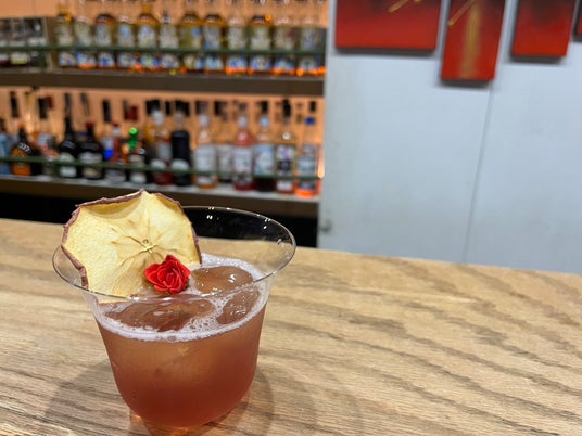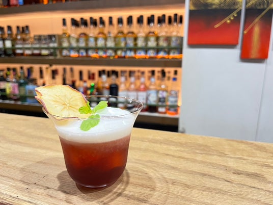 今回、当社はKOVALカスクシードルをベースに、素材の風味を活かしたオリジナルカクテルを開発しました。使用されているオリジナルブランド「咲グラスシリーズ」の「咲ロックグラス」によってシードルの香りがより一層広がります。