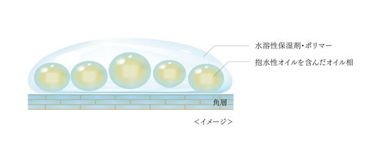 水を抱え込みやすいオイルと水溶性ポリマーの組み合わせで、きゅっと引き締まる感触を実現。