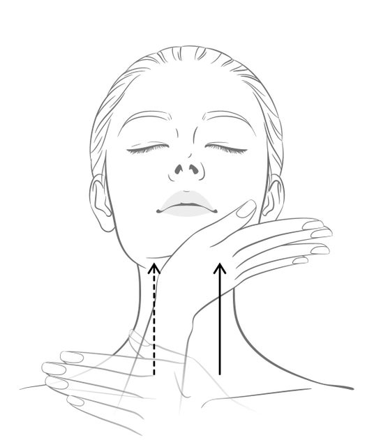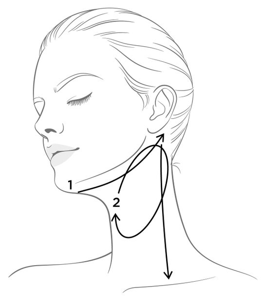 あご下→フェイスライン→耳下腺→首側面を鎖骨のくぼみまで