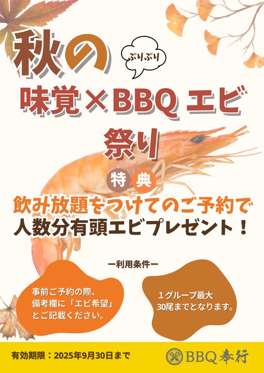 ★ 9月は秋の味覚×BBQエビ祭りキャンペーン!