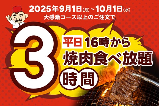 株式会社トマトアンドアソシエイツ(本社:兵庫県西宮市、代表取締役社長:笹村 啓介)が運営する、焼肉食べ放題「じゅうじゅうカルビ」では、2025年9月1日(月)~9月12日(金)の平日16時以降限定で、小学生の食べ放題料金を999円(税込1,099円)にてご提供いたします。