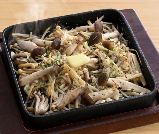 旬の“きのこ”2種類をたっぷり使い、使用。熱々の鉄板から立ちのぼる香りるバターが食欲をそそります。コク深いバターと“きのこ”の食感が絶妙に重なりと濃厚な旨みが引き立ち、シンプルだからこそ、な調理ながら素材の旨味力を存分に楽しめる味わえる逸品です。