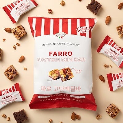 ファッロ 高プロテインバー(ショップ名:Grain on 公式ショップ)イタリア産ファッロにナッツ類をぎっしり。個包装&ひと口サイズで手軽に楽しめる。