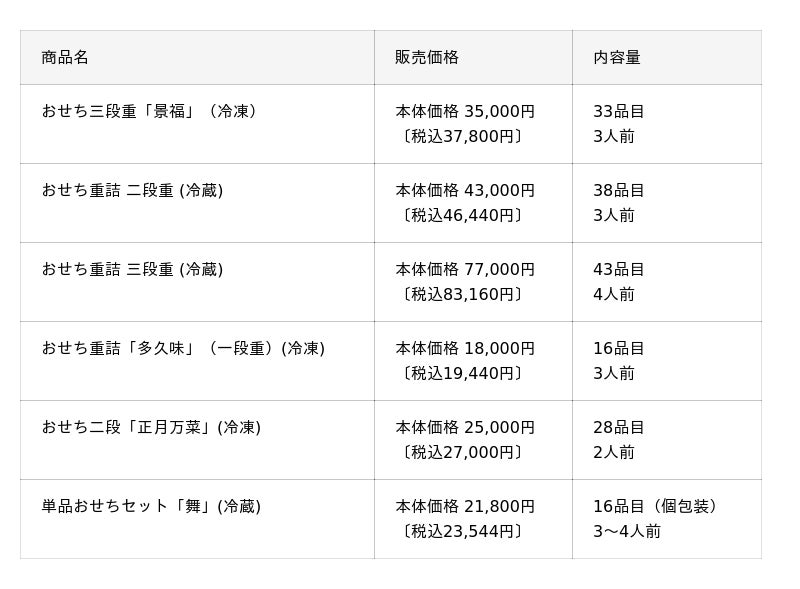 ◆『本店 山茶花荘(さざんかそう)おせち』(4~5人前/冷蔵)本体価格250,000円〔税込275,000円〕