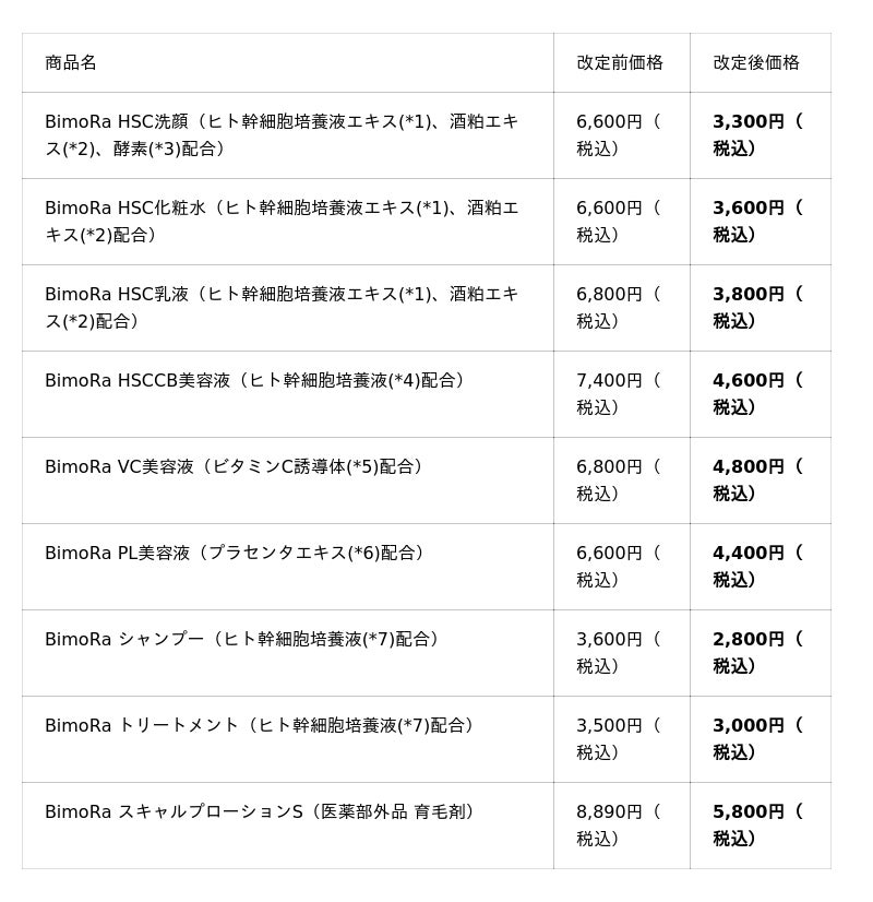 このたび、スキンケアブランド「BimoRa」シリーズの価格改定を行うことを決定いたしました。