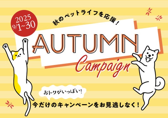 ペットゴー株式会社(本社:東京都中野区、代表取締役社長:黒澤弘、証券コード:7140、以下「当社」)が運営するペットヘルスケア通販サイト「ペットゴー(petgo.jp)」にて、9月1日より「オータムキャンペーン」を開催いたします。