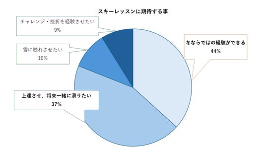 これまで星野リゾートでは、「子どもに冬ならではの経験をしてもらいたい」、「スキー人口を増やし、スノーリゾートを盛り上げたい」という想いでスキーレッスンを開催してきました。参加した子どもに「楽しい」と感じてもらうのはもちろんのこと、子どもを参加させる親のニーズも満たしたいという想いから、「スキーレッスンに期待する事」に関する会場調査を実施。調査の結果から、期待する事の半数以上が「冬ならではの経験ができる」、「スキーの上達」ということがわかりました。会場調査の結果を受け、子どもが冬ならではの経験を通して、楽しみながら「確実な上達」を約束できる「雪ッズ」が誕生しました。