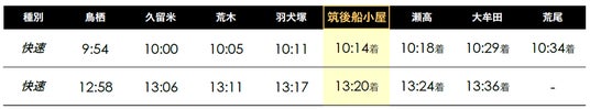 鹿児島本線:鳥栖~筑後船小屋~大牟田・荒尾3 臨時列車の発車時刻