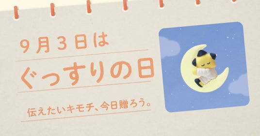 〈毎月1日、誰かにキモチを贈りたくなる「◯◯の日」を公開!〉“記念日”にちなんだ「giftee(R)」オリジナルのスマホ用壁紙カレンダー「おくりものカレンダー」2025年9月3日(水)は「ぐっすりの日」