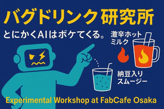 AIとの関係性だって、大阪らしく笑いで進めていきたい。展示期間中に、AIと一緒にボケとツッコミを繰り広げるワークショップを開催します。「スッキリしたい」と入力すれば“激辛ホットミルク“。「癒されたい」とお願いすれば“納豆入りスムージー“。そんな“バグった“AIの提案を、人間がツッコミながら調整していくことで、やっと完成させる「バグドリンク研究所」。AIの暴走と人間のツッコミが交差する、その一瞬の掛け合い。“未来の食”をめぐる予測不能な実験が展開されます。