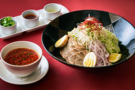 広島のつけ麺を再現しつつ、当店オリジナルの麻辣油・ピリ辛のつけだれでお召しあがりください。