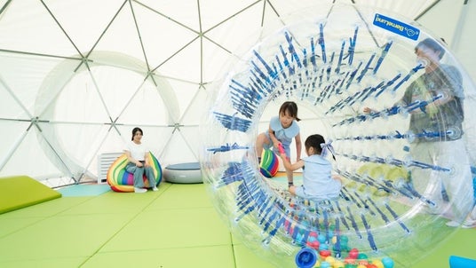 お子さまが安全に遊べるアイテムを2つに分けた(知育と運動をテーマ)ドームテントです。