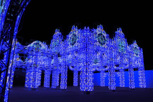 「青の宮殿」美しいマリンブルー一色の宮殿イルミネーションです。青く輝く宮殿の中を歩けば、青の世界が広がります。